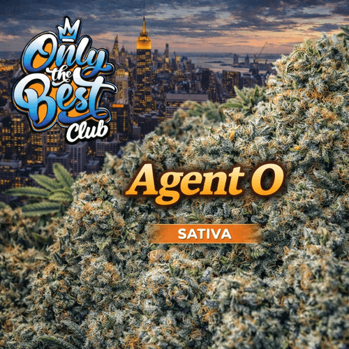 Agent O, also known as “Agent Orange,” is a sativa dominant hybrid (75% sativa/25% indica) strain created through crossing the infamous Jack's Cleaner X Space Queen strains. This bud brings on the flavor with an eye-opening sweet citrus taste that leaves your mouth and eyes watering with its rich chemical exhale. The smell takes a pungent turn, with sweet cheese accented by sharp chemicals and citrus. This aroma intensifies as each bright neon green golden trichome-coated spade-shaped nug is broken apart and burned. The Agent O high is just as bright as the flavor, bringing on energetic and uplifted effects that are perfect for giving you an extra boost of energy when you're feeling tired or down. It hits you with a rush of creative energy at the onset, leaving you feeling slightly hazy and giggly with a sense of deep-felt euphoria. As this effect grows, so will your happiness, leaving you blissful and hazy with no real sense of what's happening around you. Thanks to these effects and its high 25% average THC level, Agent O is said to be perfect for treating conditions such as ADD or ADHD, bipolarity, chronic pain, headaches or migraines, and chronic fatigue.
